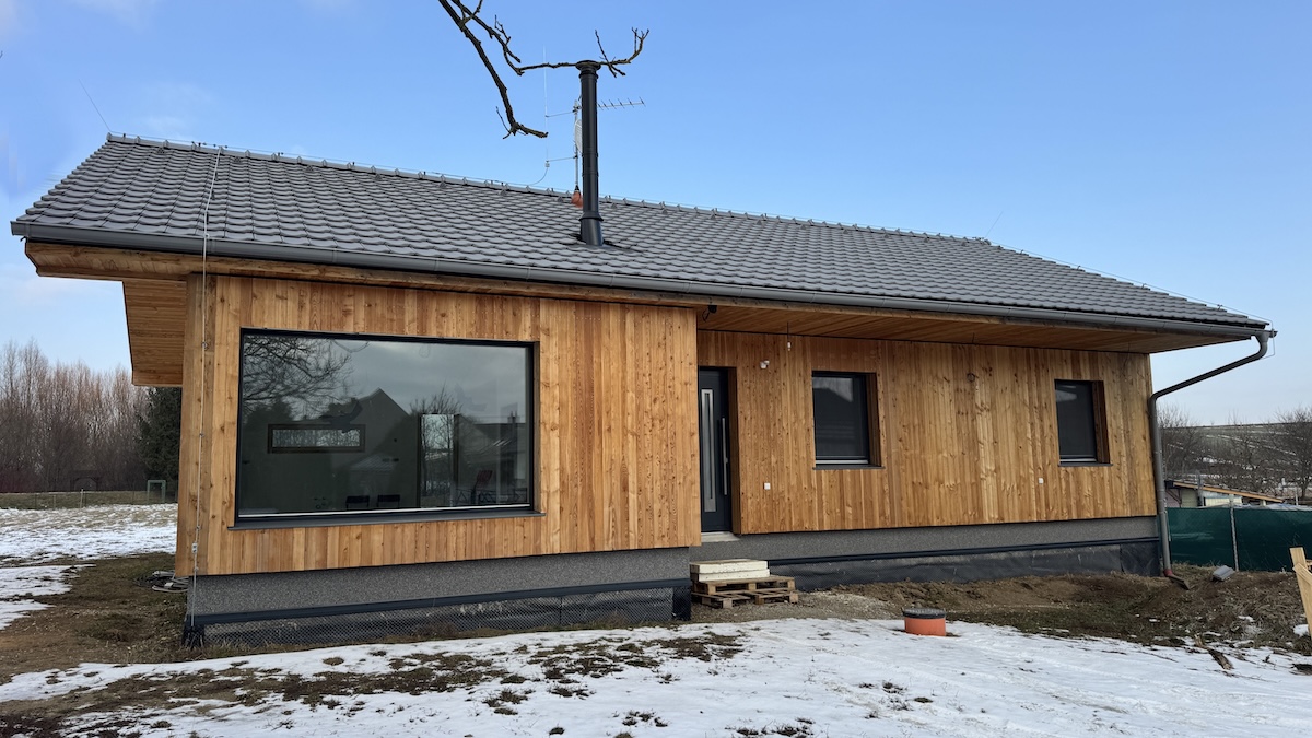 Architektonické řešení elegantně kombinuje dřevěný obklad s omítkou, což dodá domu přírodní a moderní vzhled. Dům má sedlovou střechu se sklonem 25°, pokrytou skládanou krytinou. Konstrukce střechy je koncipována jako otevřený vaznicový krov v obývacím pokoji a kuchyni, zatímco v ostatních částech domu budou využity příhradové vazníky.